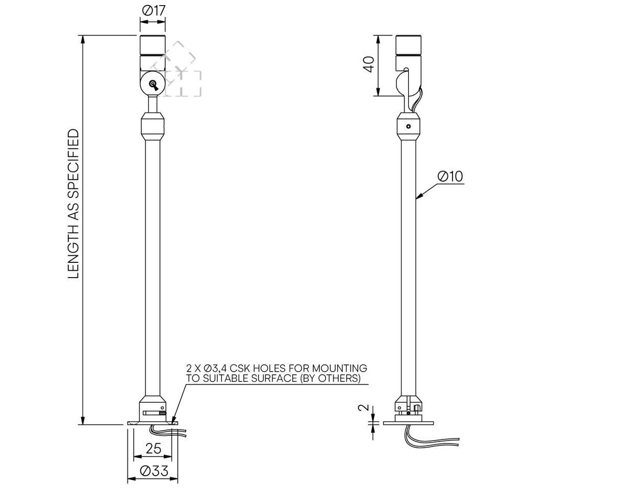 The stem length can be specified to order with both pan and tilt locking mechanisms.