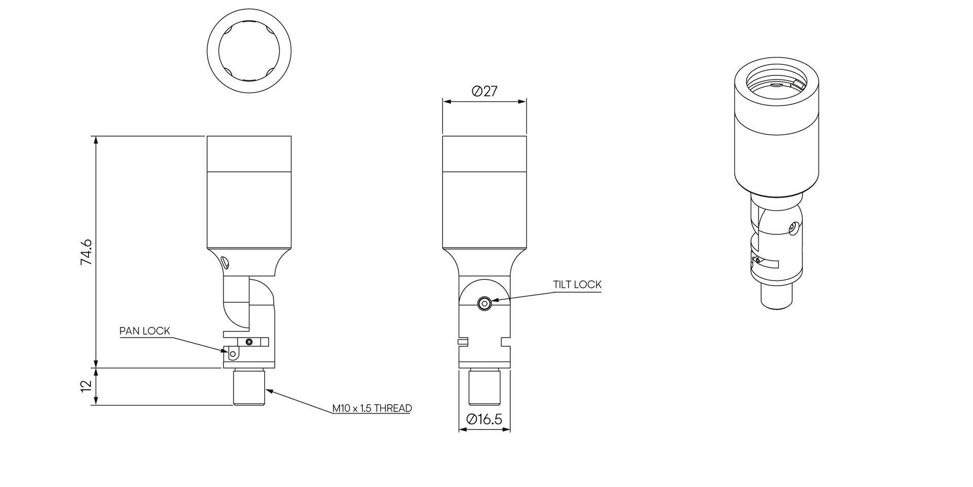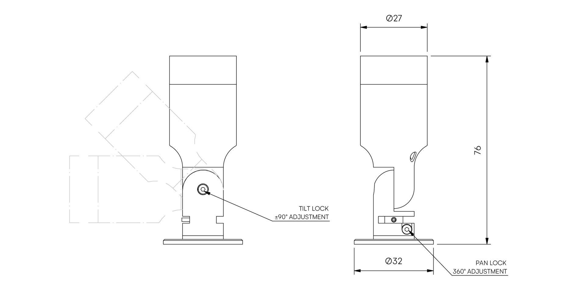 • Lockable Tilt and Pan mechanisms.
