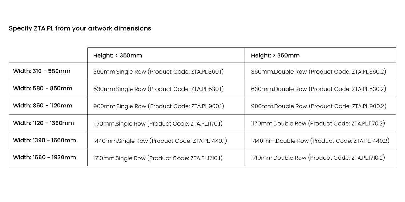 • Made-to-order lengths customised to suit all types of artwork.